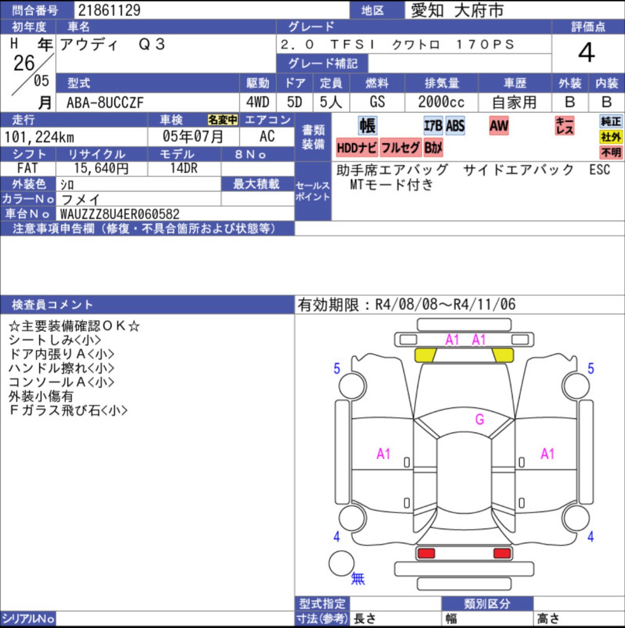 Seats | WAUZZZ8U4ER060582 |